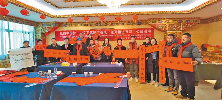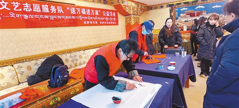 拉薩市文聯(lián)書法家協(xié)會開展送萬福進萬家公益活動。
