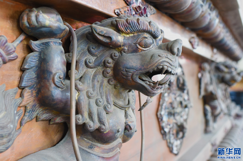 圖為白納鍛銅技藝代表性傳承人羅布占堆的手工作品局部(2月25日攝)。新華網(wǎng) 旦增努布 攝