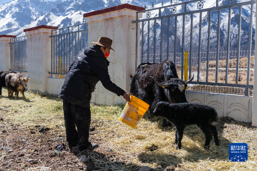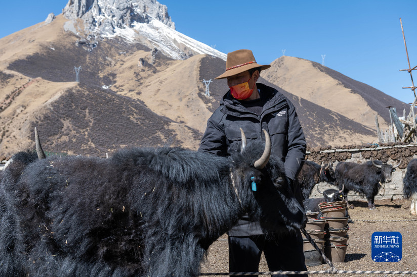 貢培在西藏娘亞牦牛養(yǎng)殖產(chǎn)業(yè)發(fā)展有限責(zé)任公司的養(yǎng)殖場(chǎng)工作(3月30日攝)。新華社記者 周荻瀟 攝