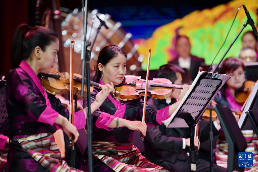 交響樂《古格幻想》在藏戲藝術(shù)中心演出(4月3日攝)。新華社記者 張汝鋒 攝