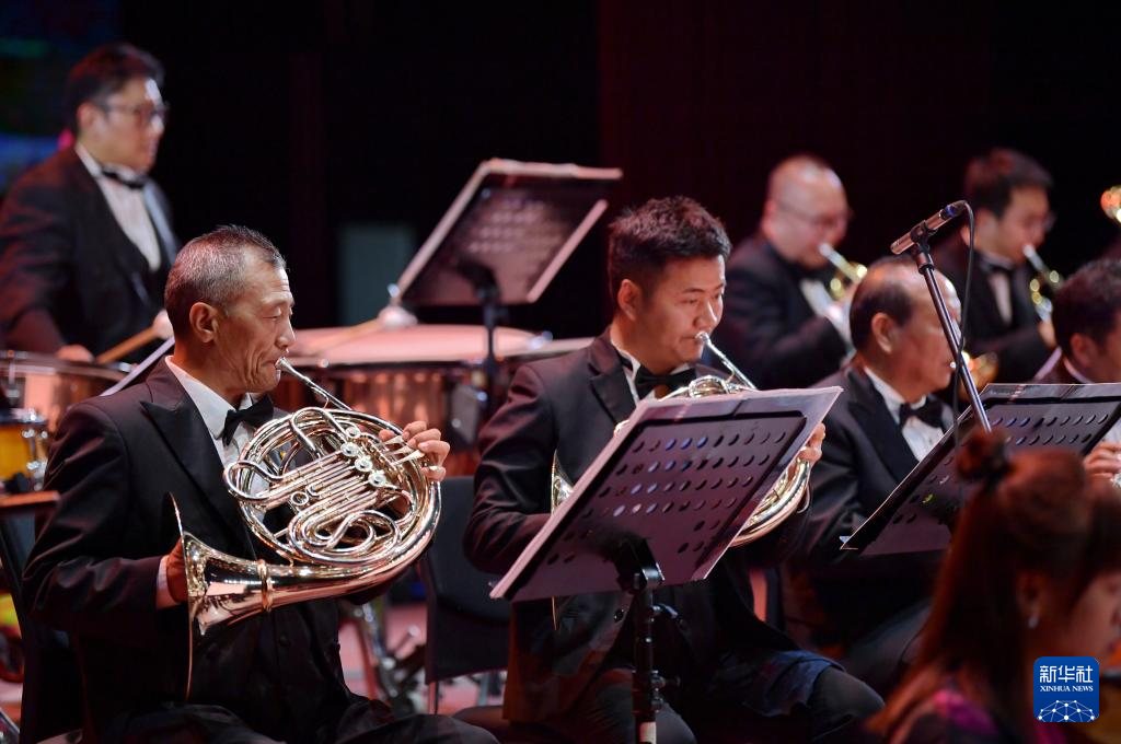 西藏愛樂樂團的藝術(shù)家在演奏交響樂《古格幻想》(4月3日攝)。新華社記者 張汝鋒 攝