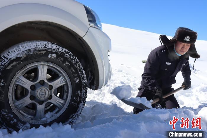圖為亞熱邊境派出所民警救助被困車輛。日喀則邊境管理支隊(duì) 攝