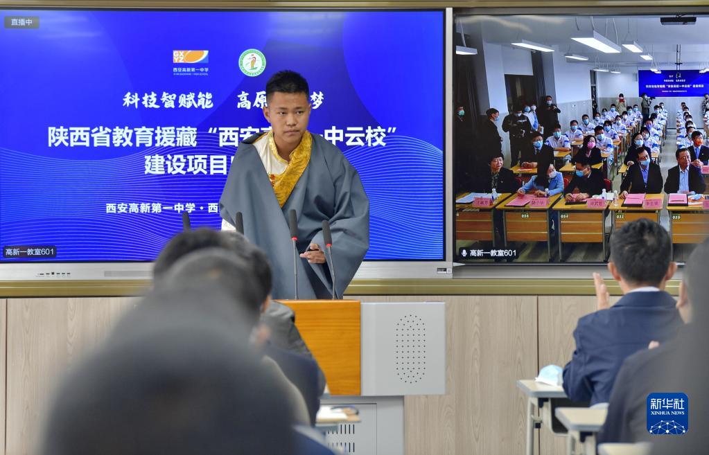 當(dāng)日,陜西省教育援藏“云校”建設(shè)項(xiàng)目正式啟動(dòng)。陜西省西安高新第一中學(xué)和西藏拉薩阿里地區(qū)高級中學(xué)結(jié)成“對子”,借助5G網(wǎng)絡(luò)開展教學(xué)教研互動(dòng),助力提升教育水平。