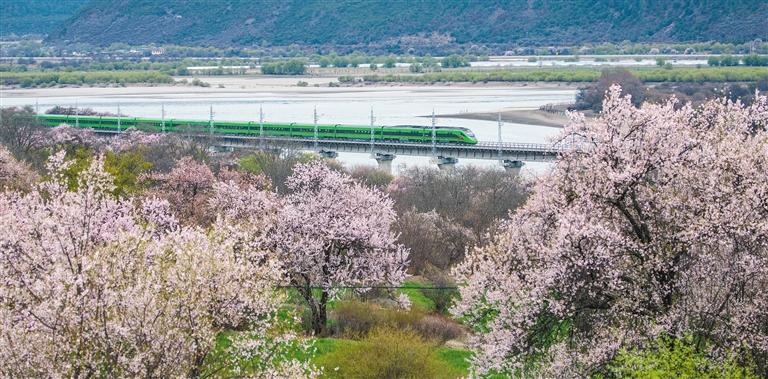 拉林鐵路迎來通車運(yùn)營以來的第一個春天。復(fù)興號動車每日穿梭于雅魯藏布江畔的層巒疊嶂間,與兩岸盛開的桃花共同構(gòu)成一幅優(yōu)美畫卷。