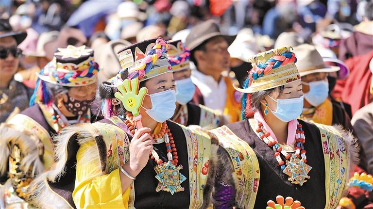 圖為在第七屆“尼屋桃花節(jié)”開幕式上,身穿民族服裝的當(dāng)?shù)厝罕姟?記者 萬靖 通訊員 平措卓瑪 攝