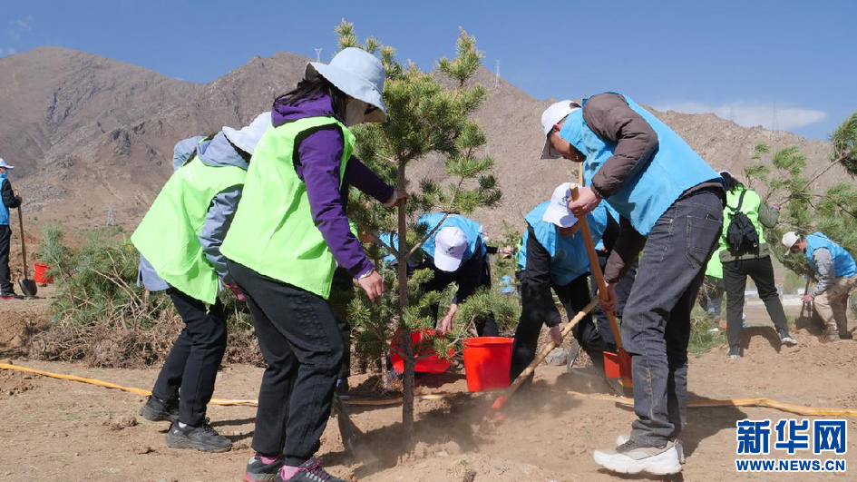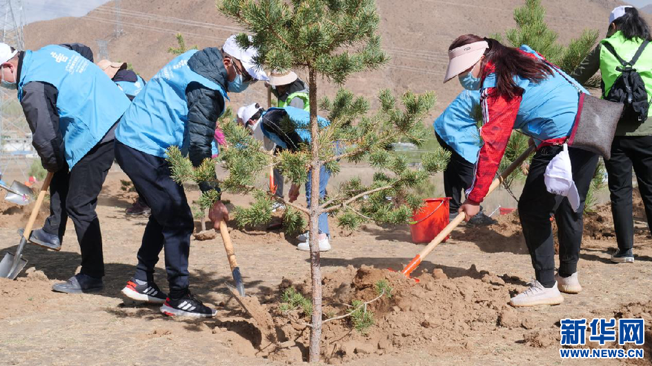 圖為植樹活動現(xiàn)場(4月16日攝)。新華網(wǎng)發(fā) 貢桑央吉(實習(xí)生)攝