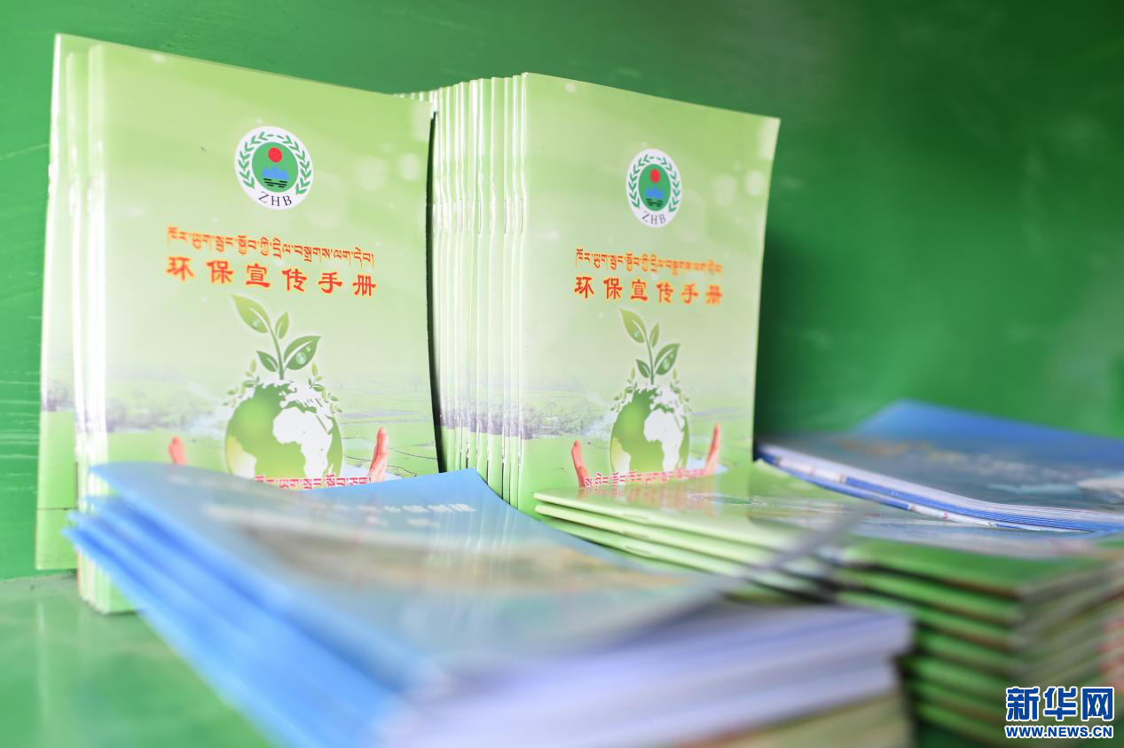 圖為“垃圾銀行”柜臺(tái)上擺放的宣傳手冊(cè)(4月20日攝)。新華網(wǎng) 旦增努布攝