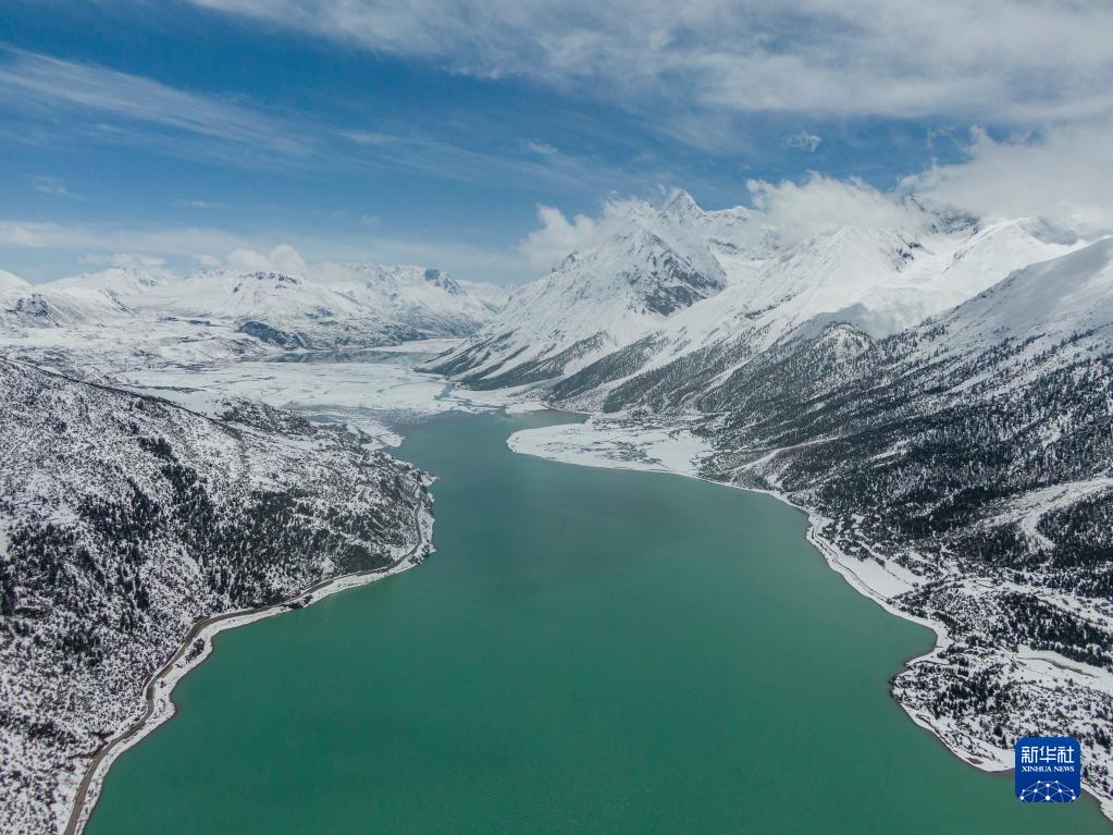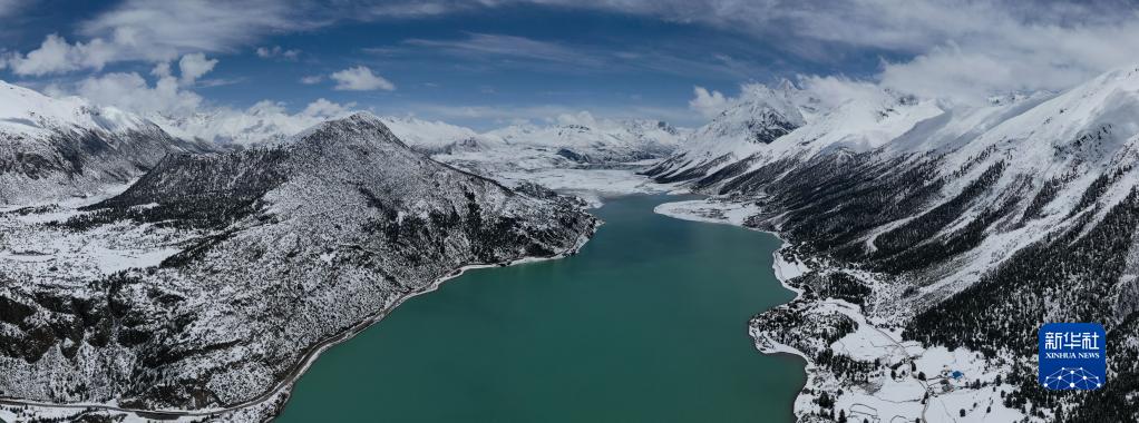 這是無人機拍攝的然烏湖(4月18日攝)。新華社記者 孫非 攝