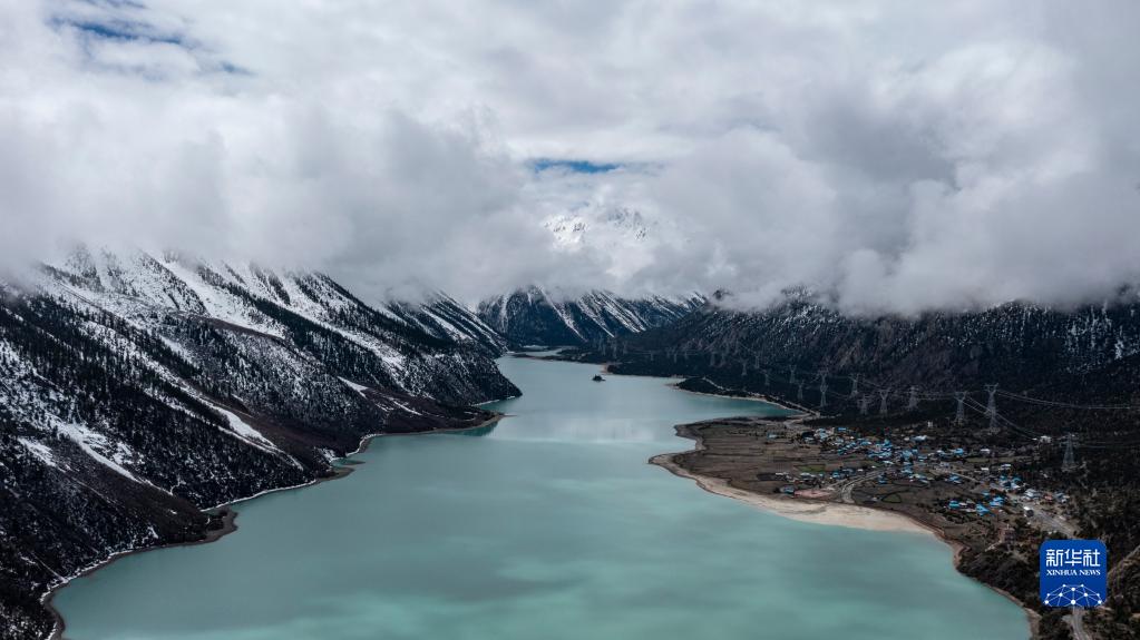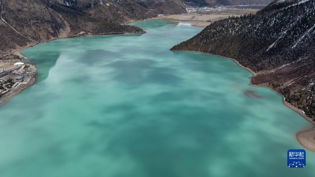 這是無人機拍攝的然烏湖(4月24日攝)。新華社記者 孫非 攝