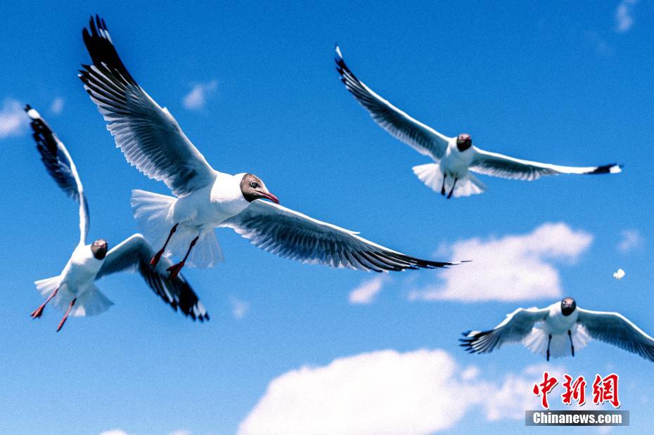 連日來,班公湖晴空萬里,在藍寶石般的湖面上,小白鳥自由游弋。貢桑拉姆 大象 嘎瑪次仁 攝
