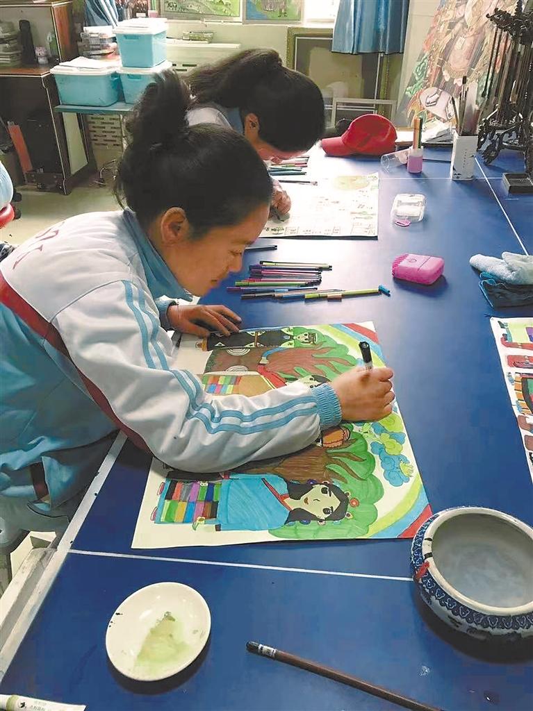 圖為學(xué)生們?cè)谏厦佬g(shù)課。