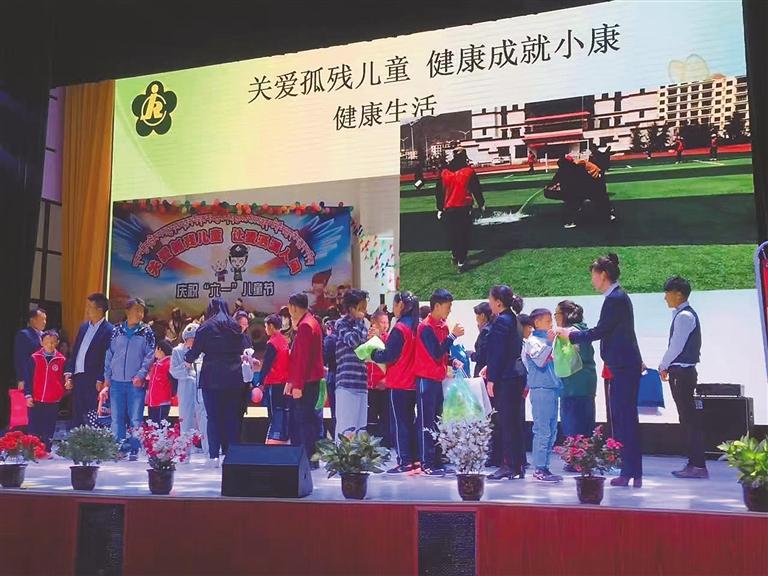 圖為在全國(guó)助殘日,全校師生開展“關(guān)愛孤殘兒童,健康成就小康”活動(dòng)。