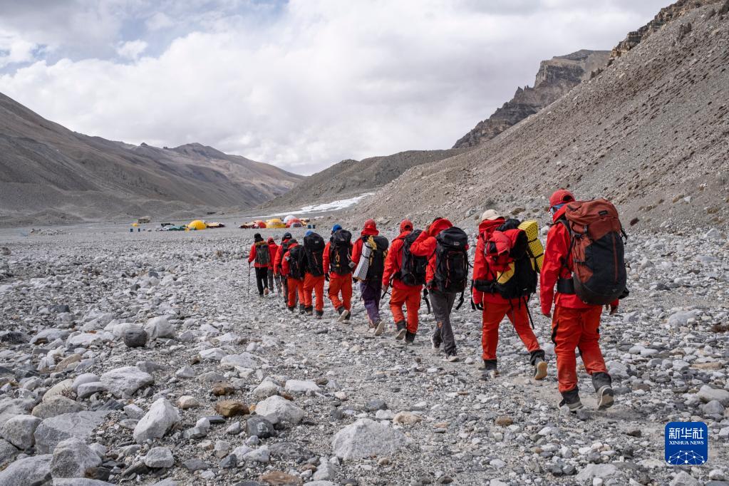 珠峰科考登頂工作小組隊員們安全返回珠峰大本營。