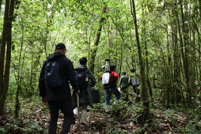 圖為測(cè)量團(tuán)隊(duì)進(jìn)入森林腹地進(jìn)行實(shí)地測(cè)量。(受訪(fǎng)者供圖)