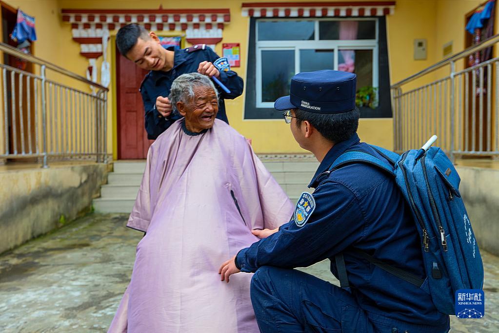 “阿嗚(察隅縣方言、老者的尊稱),扎扎(理發(fā))!”定期走訪中,“背包民警”除了給竹巴村孤寡老人多多送生活必需品,還為他理發(fā)。“老人耳朵不太好,剪頭發(fā)時經(jīng)常動來動去,我們就耐心陪老人聊天,現(xiàn)在越來越熟了還經(jīng)常聊家常?!泵窬娋S說。