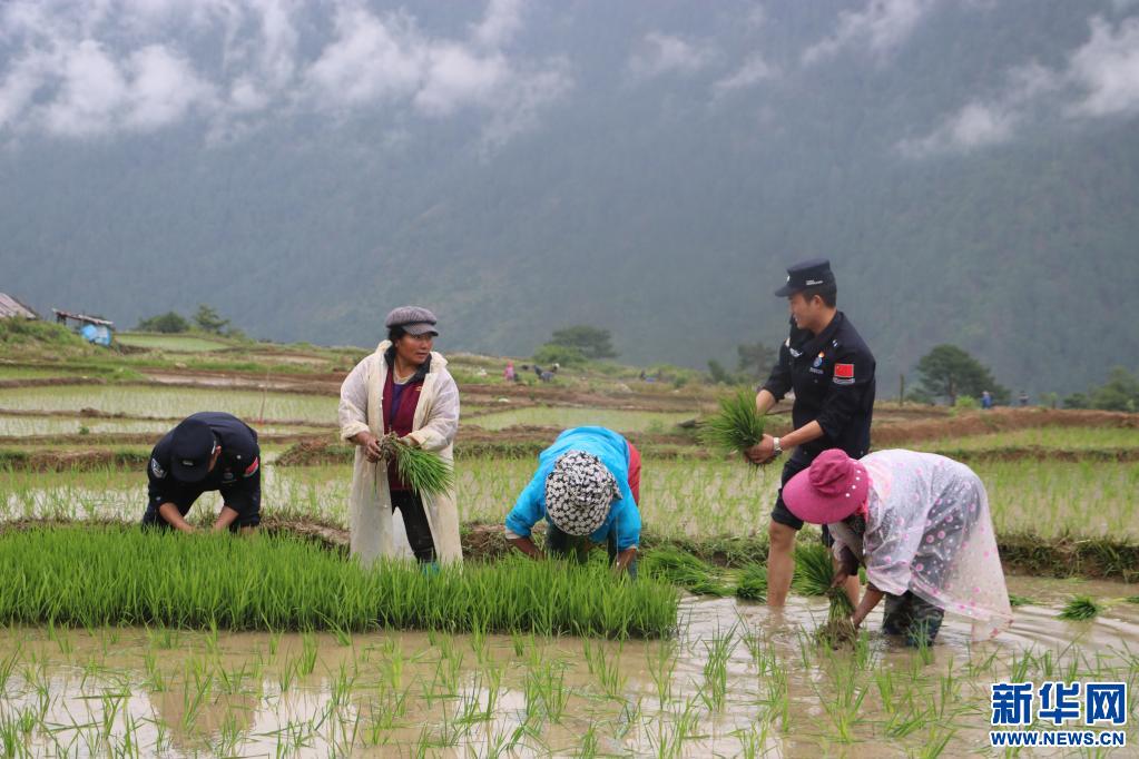 巴安通邊境派出所民警幫助僜人群眾插秧。