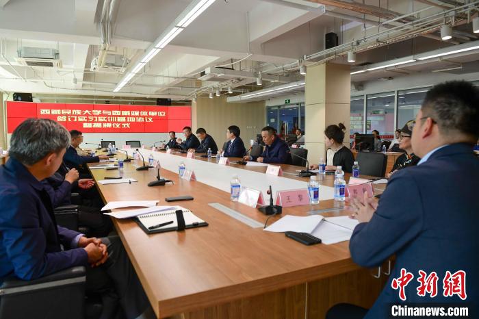 5月27日,西藏民族大學與西藏日報社、西藏廣播電視臺、人民網(wǎng)西藏頻道、中國新聞社西藏分社、中國西藏網(wǎng)西藏記者站等媒體單位簽訂實習實訓基地協(xié)議暨揭牌儀式在西藏日報舉行。