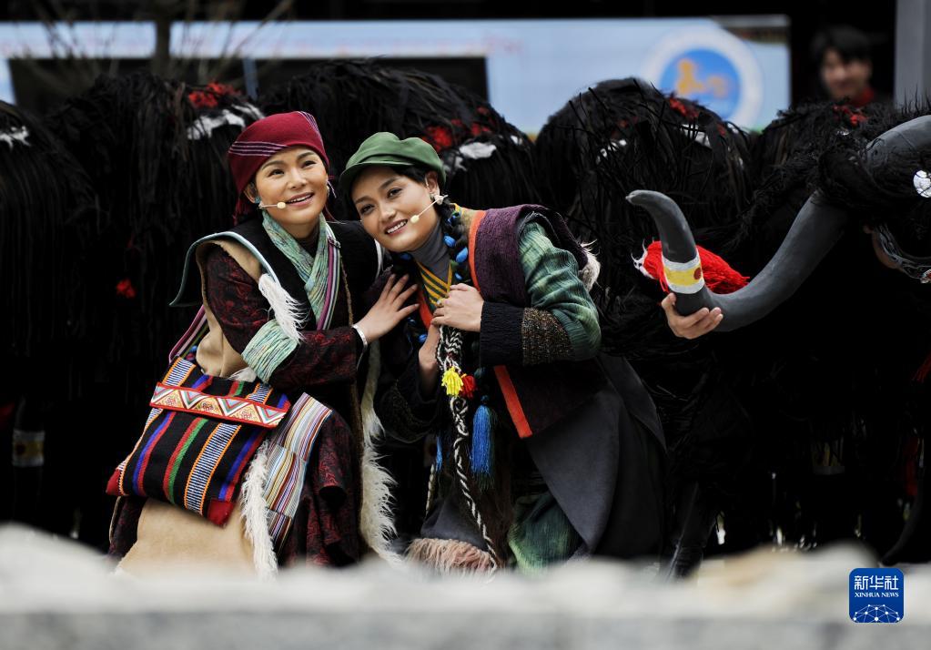 當(dāng)日,西藏自治區(qū)歌舞團(tuán)打造的歌舞劇《天邊格桑花》在西藏山南市隆子縣玉麥鄉(xiāng)首演?!短爝吀裆;ā啡〔挠谟覃溹l(xiāng)桑杰曲巴和女兒卓嘎、央宗放牧守邊的故事。