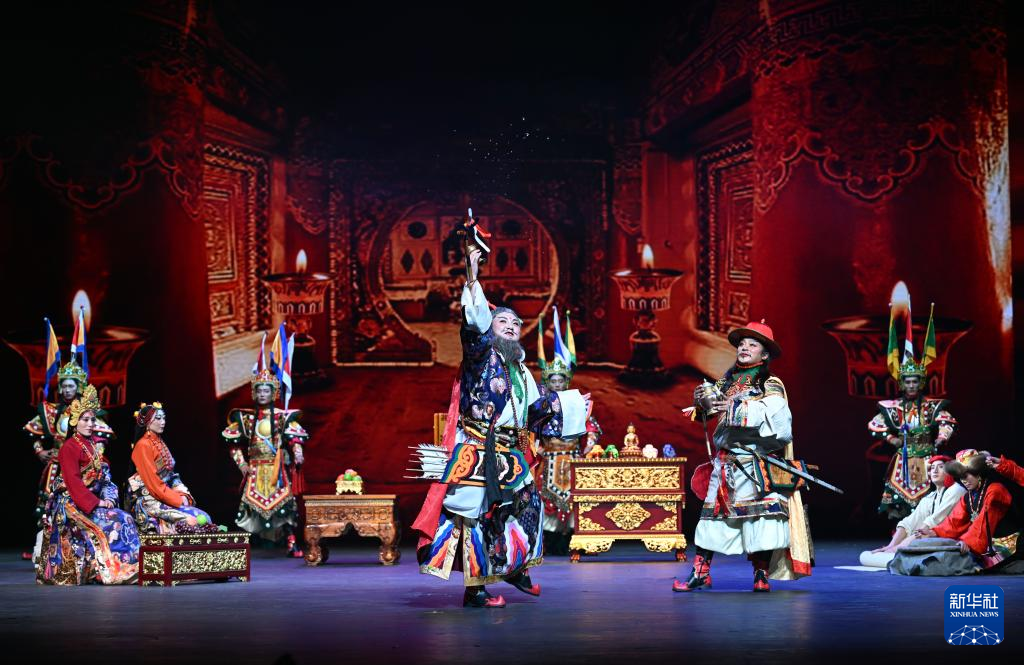 演員在格薩爾藏戲《賽馬稱王》中表演。新華社記者 金良快 攝