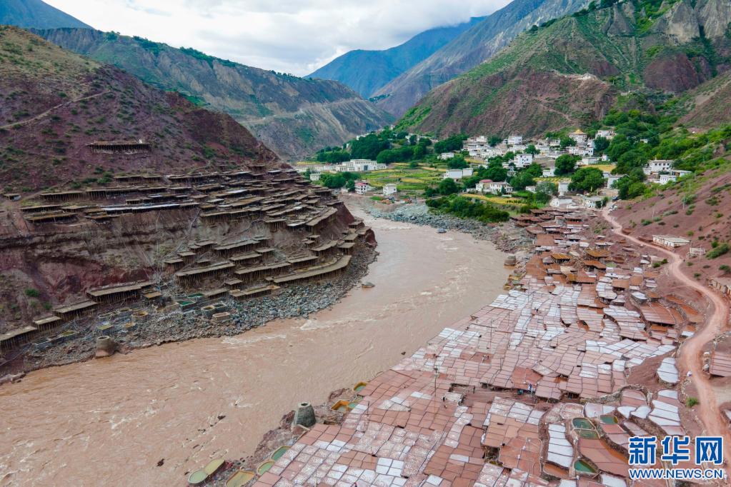 這是在西藏昌都市芒康縣納西民族鄉(xiāng)加達(dá)村拍攝的古鹽田(5月26日攝,無人機照片)。新華社記者 周荻瀟 攝