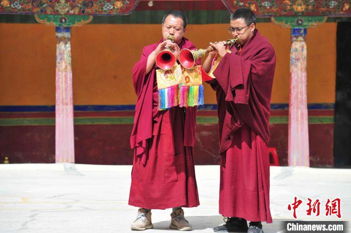 圖為哲蚌寺僧人表演甲林演奏。貢嘎來松 攝