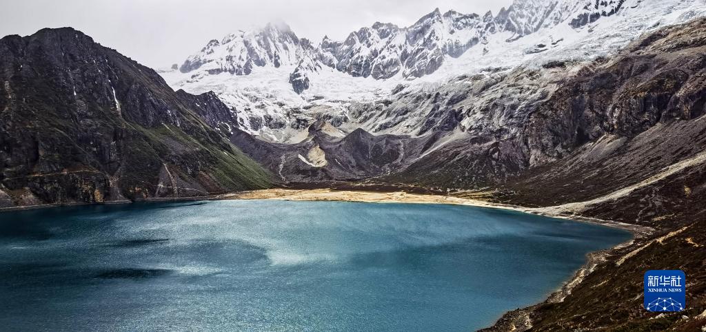 這是5月1日在西藏山南市從白瑪林錯(cuò)方向拍攝的庫拉崗日冰川(手機(jī)照片)。新華社記者 沈虹冰 攝