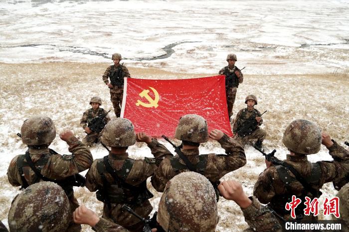 “我站立的地方是中國(guó),我用生命捍衛(wèi)守護(hù),寧舍自己一條命,不丟祖國(guó)半寸土?!蔽鞑剀妳^(qū)“墨脫戍邊模范營(yíng)”巡邏官兵,在國(guó)旗下緊握鋼槍,莊嚴(yán)宣誓,洪亮的聲音久久回蕩在“雪域孤島”墨脫上空。