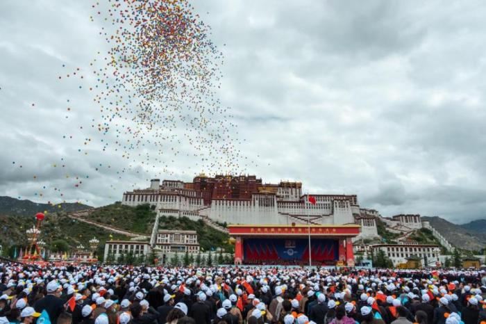 2021 年8 月19 日,慶祝西藏和平解放70 周年大會(huì)在拉薩布達(dá)拉宮廣場(chǎng)舉行。 本報(bào)記者 江飛波 攝