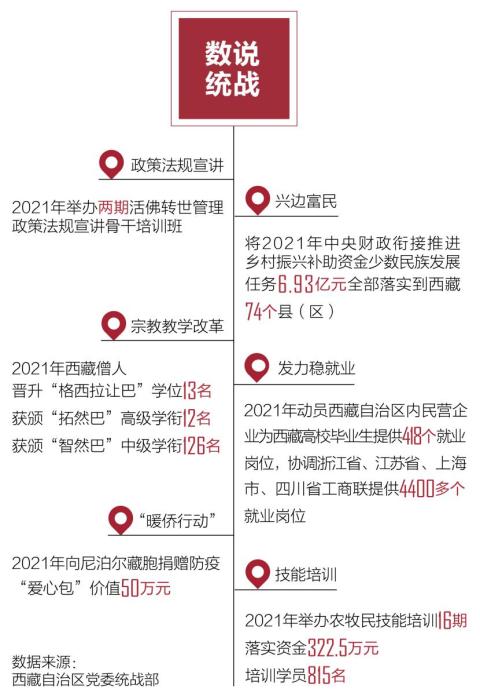 2021年,西藏統(tǒng)戰(zhàn)系統(tǒng)廣泛宣傳活佛轉(zhuǎn)世政策法規(guī),深入開(kāi)展反分裂斗爭(zhēng),牢牢掌握反分裂斗爭(zhēng)全局主動(dòng)性,統(tǒng)戰(zhàn)民族宗教領(lǐng)域保持了持續(xù)和諧穩(wěn)定。
