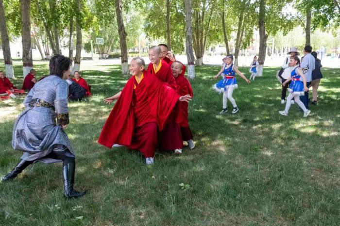 2021 年6 月1 日兒童節(jié),西藏佛學(xué)院與拉薩市第一小學(xué)舉行聯(lián)誼活動(dòng),孩子們一起朗誦詩歌、玩游戲等。記者 江飛波 攝