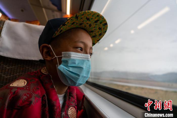 6月25日,申格卡崗村13歲牧童第第首次乘坐高原復(fù)興號,一路看著沿途不同于羌塘草原的風景?!〗w波 攝