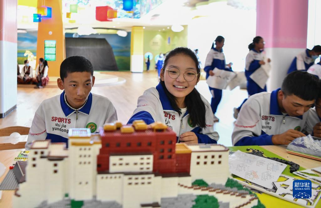 7月8日,學(xué)生代表在兒童體驗(yàn)館參與互動體驗(yàn)項(xiàng)目。新華社記者 晉美多吉 攝