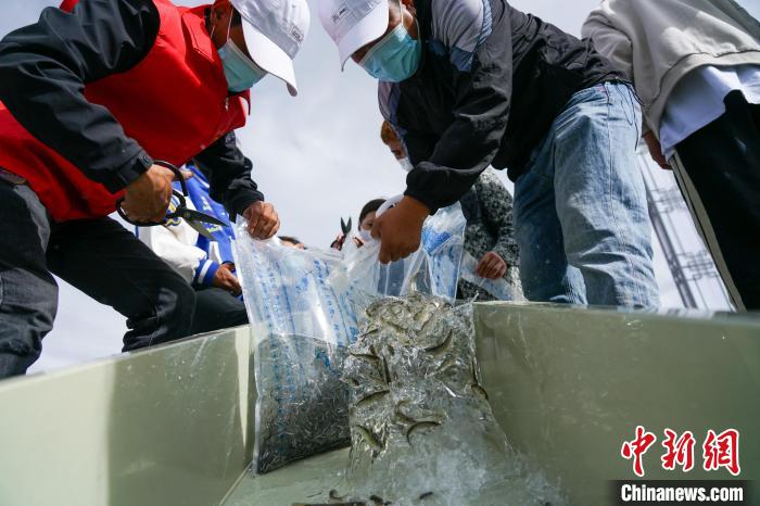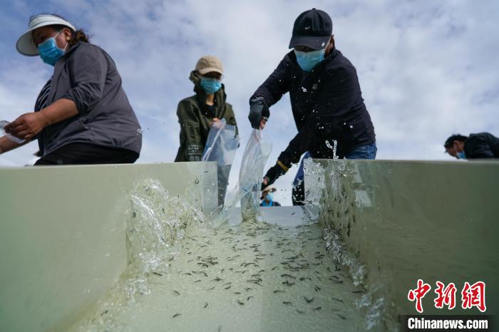 本次放流6種西藏特有魚類,總計215萬尾?!〗w波 攝
