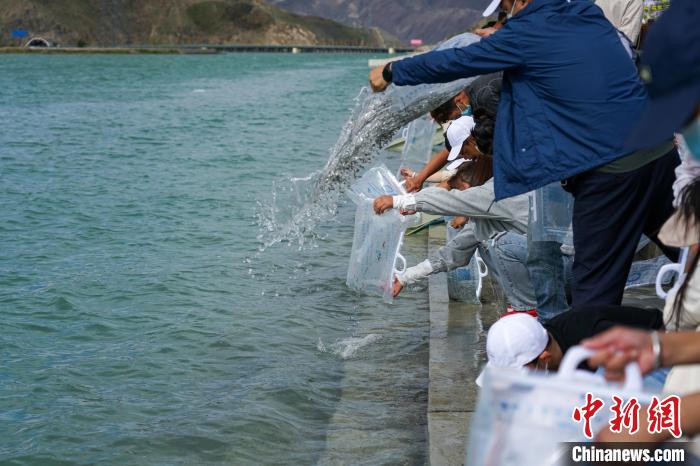 圖為西藏特有魚類增殖放流活動現(xiàn)場?!〗w波 攝