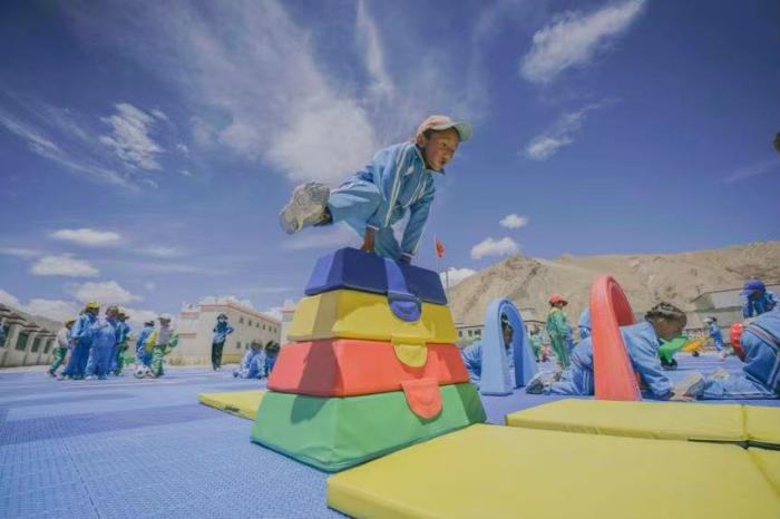 “新操場是我們的游樂園”,六歲的旦增次央第一次見到操場時(shí)開心極了,“操場上可以跑可以跳,還有好多新玩具,太好玩了!”