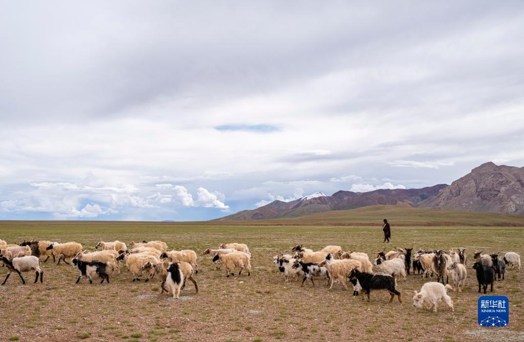 雙湖縣多瑪鄉(xiāng)仲魯瑪村牧民在放牧(7月13日攝)。新華社記者 孫非 攝