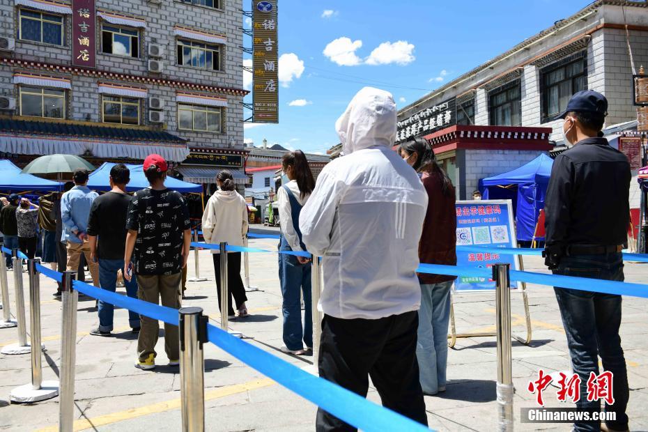 8月9日,西藏拉薩,市民在城關(guān)區(qū)八廓街道魯固社區(qū)的核酸檢測現(xiàn)場排隊進行核酸檢測。當前,西藏拉薩市設置545個核酸檢測點開展全員核酸檢測。 中新社記者 貢嘎來松 攝