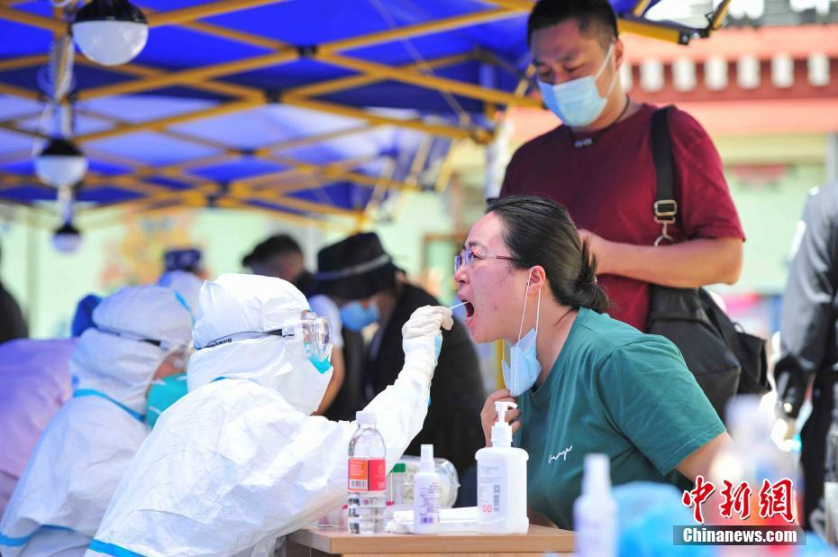 8月9日,西藏拉薩,市民在城關(guān)區(qū)八廓街道魯固社區(qū)的核酸檢測現(xiàn)場進行核酸檢測。當前,西藏拉薩市設置545個核酸檢測點開展全員核酸檢測。 中新社記者 貢嘎來松 攝