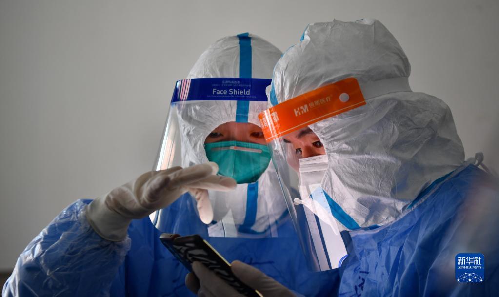 8月10日上午,在拉薩市某小區(qū)核酸采樣點(diǎn),工作人員為采集核酸樣本進(jìn)行準(zhǔn)備工作。新華社記者 晉美多吉 攝