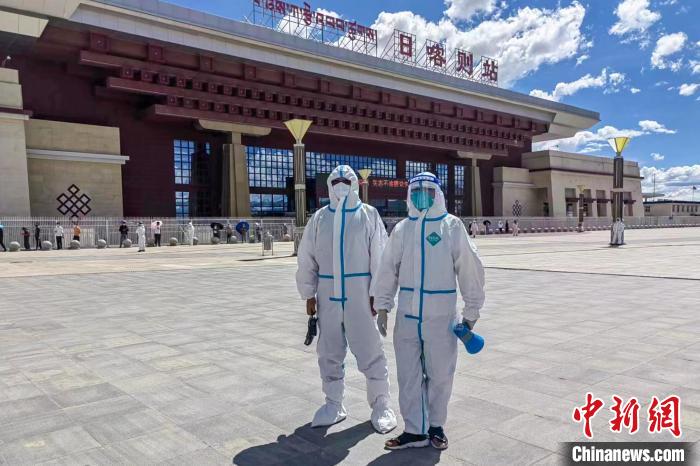 日喀則火車站志愿服務隊參與抗擊疫情。斗山得 攝