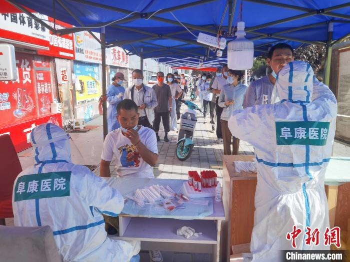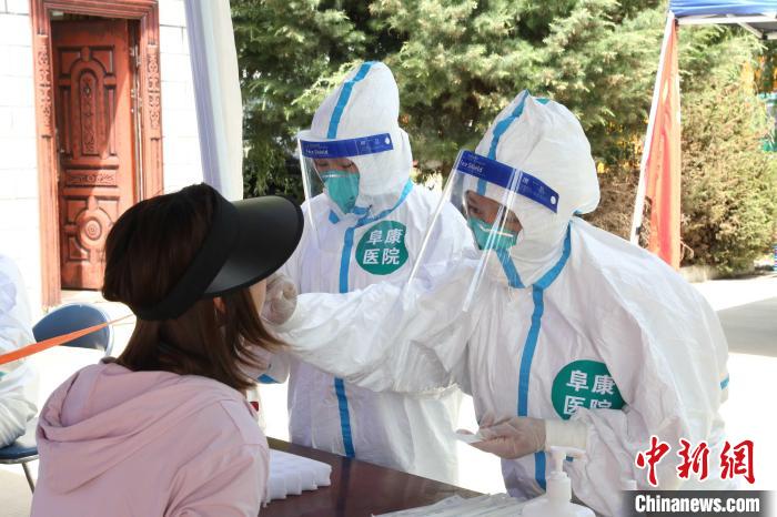 圖為西藏阜康醫(yī)院醫(yī)務(wù)人員在社區(qū)進行核酸采樣。阜康醫(yī)院供圖