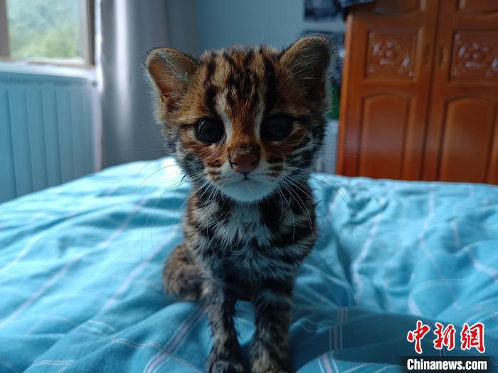 圖為被勒布邊境派出所民警救助的豹貓?!∏f冀 攝