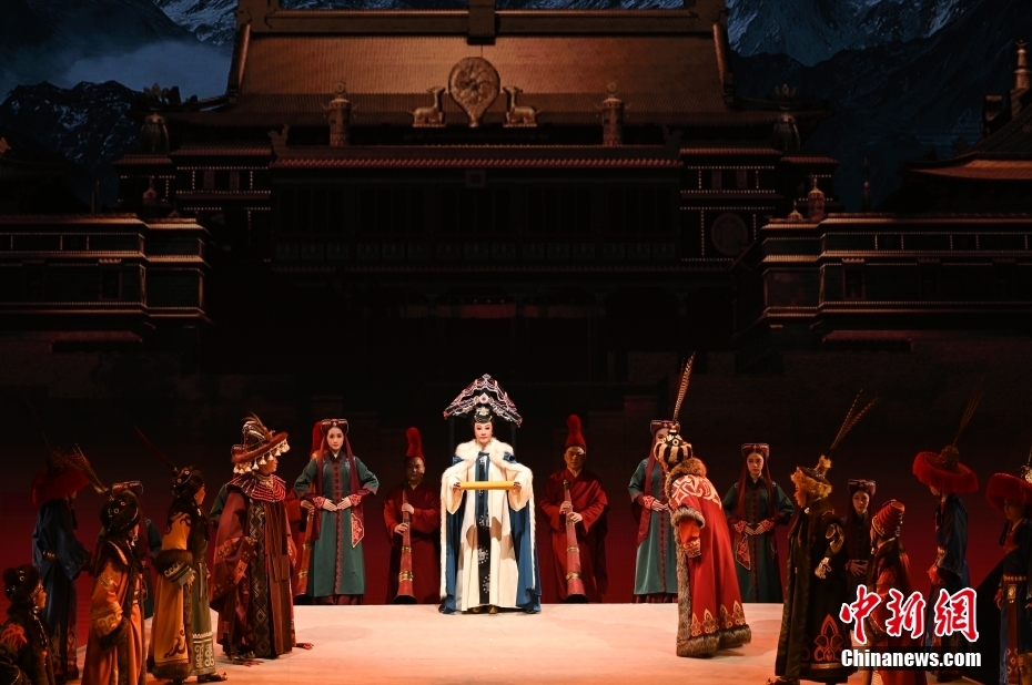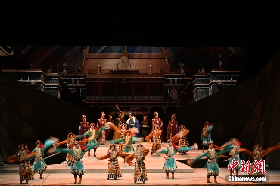 10月11日晚,大型新編歷史粵劇《文成公主》在廣東廣州大劇院首演。該劇以文成公主和親進(jìn)藏的歷史事件為依據(jù)創(chuàng)作,講述了文成公主堅(jiān)守吐蕃四十年,促進(jìn)了吐蕃經(jīng)濟(jì)、文化的發(fā)展,加強(qiáng)了漢藏人民的友好關(guān)系。 中新社記者 陳楚紅 攝