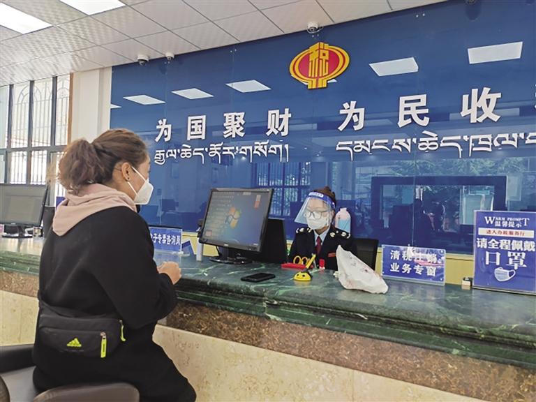 林芝市稅務(wù)局基層稅務(wù)部門為納稅人辦理涉稅業(yè)務(wù)。圖由自治區(qū)稅務(wù)局提供