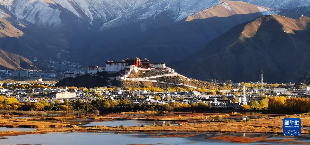 這是從拉魯濕地方向拍攝的布達拉宮(10月29日攝)。新華社記者 沈虹冰 攝
