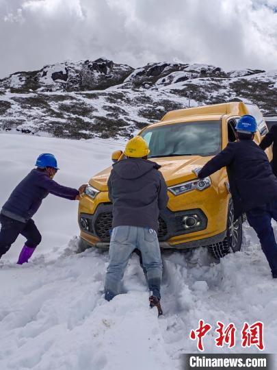 10月27日,錯那縣供電公司公司人員在搶修現(xiàn)場推車。次仁央金 攝