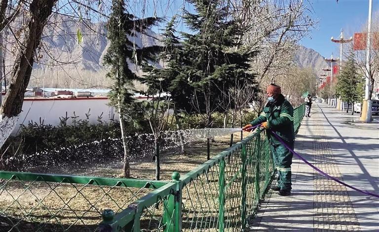 潔達(dá)園林公司副總經(jīng)理次仁平措介紹:“近日,我們的工作人員已開始對城區(qū)綠化植被、行道樹和公園苗木進(jìn)行澆灌。此次冬季灌溉工作,主要采取人工噴灑及車輛澆灌相結(jié)合的方式,將解決大型噴灑設(shè)備無法全面澆灌的問題。”