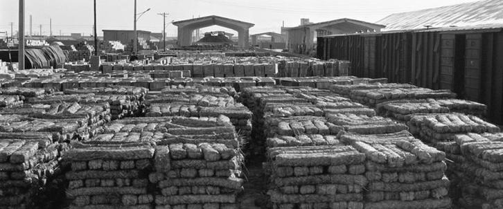 1989年2月,湖南、云南、四川等省專門為西藏人民生產(chǎn)的民族磚茶堆放在青海省格爾木火車站,等待西藏運(yùn)輸車隊(duì)前來(lái)裝運(yùn)。