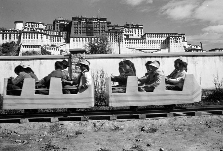 1987年,正好國(guó)慶節(jié),我趕去拉薩勞動(dòng)人民文化宮里的游樂(lè)場(chǎng)采訪,有一個(gè)游樂(lè)設(shè)施前面,排了特別長(zhǎng)的隊(duì)伍,圍觀的人也很多,我擠過(guò)去一看,原來(lái)是電動(dòng)小火車,從未見(jiàn)到過(guò)火車的孩子們坐在小火車上開(kāi)心地笑著,臉上綻開(kāi)著一朵又一朵的“鮮花”。