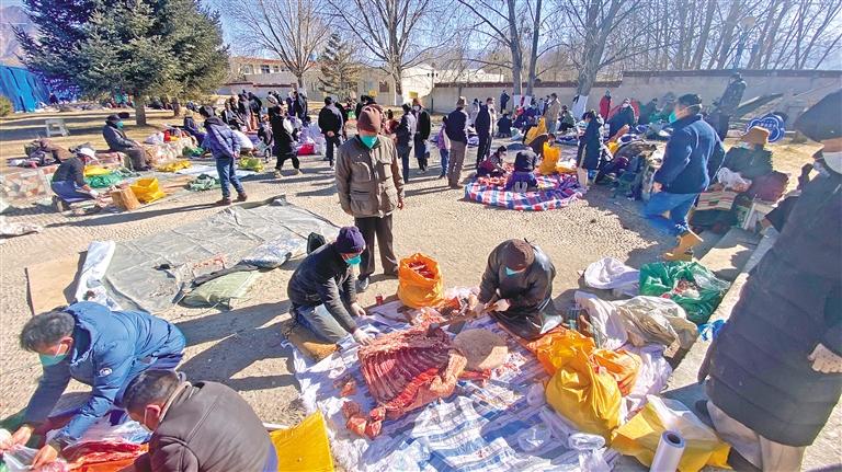 近日,拉薩市城關區(qū)繼續(xù)在市區(qū)設置“冬季牛羊肉臨時銷售市場”,按照慣例,臨時銷售市場設置在慈松塘中路,共189個攤位,牛羊肉投放時間持續(xù)至2023年2月18日。在臨時銷售市場,記者看到道路旁早已搭建好帳篷,攤位整齊劃一,市民有序購買。